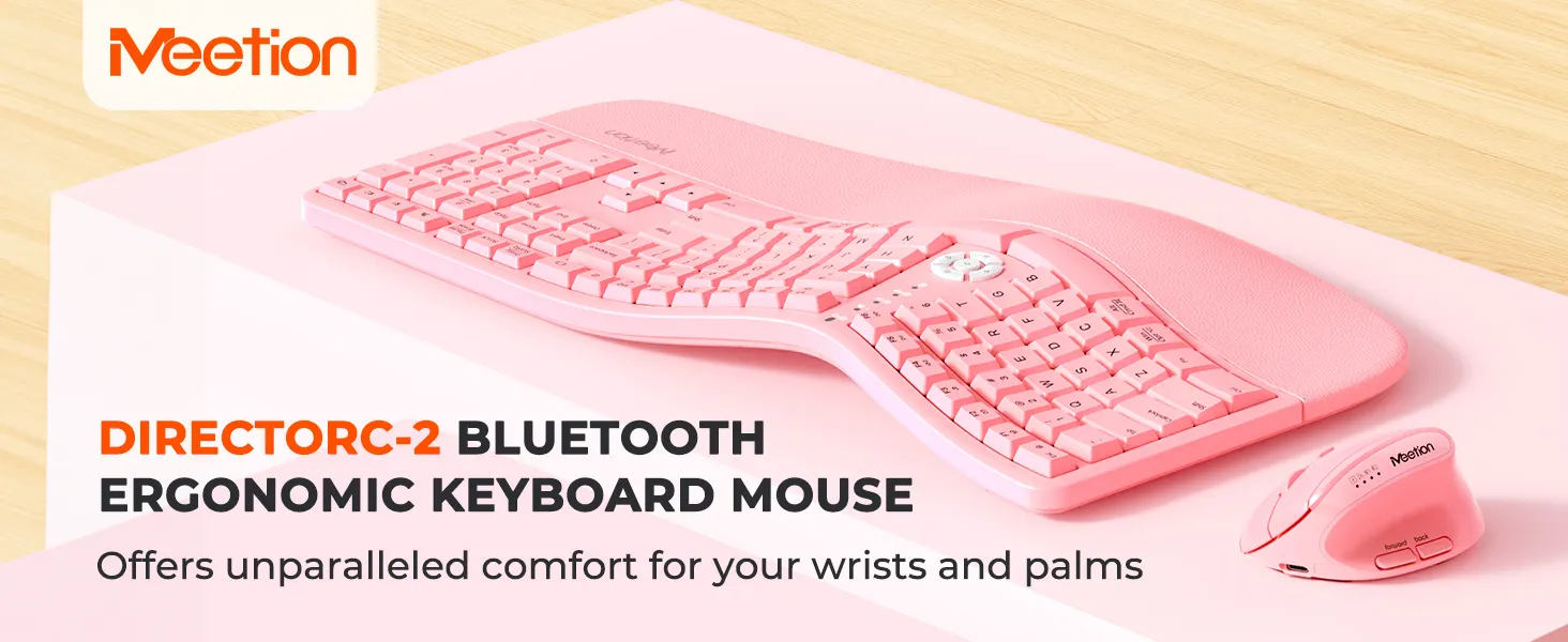 Pembe Kablosuz Çift Modlu Ergonomik Klavye ve Fare Kombinasyonu 1