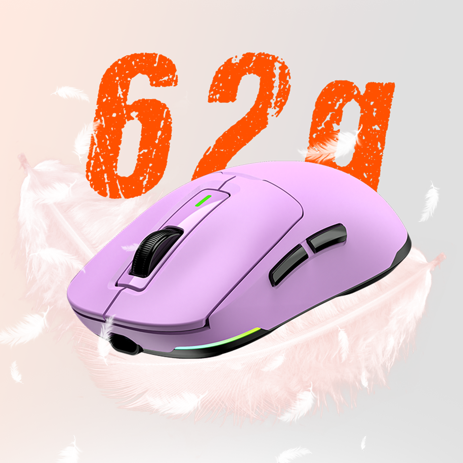 Hafif tasarım, sadece 62 gr ağırlık, çevik ve hızlı performans. Oyun deneyimini artırmak için rüzgar gibi süzülün.