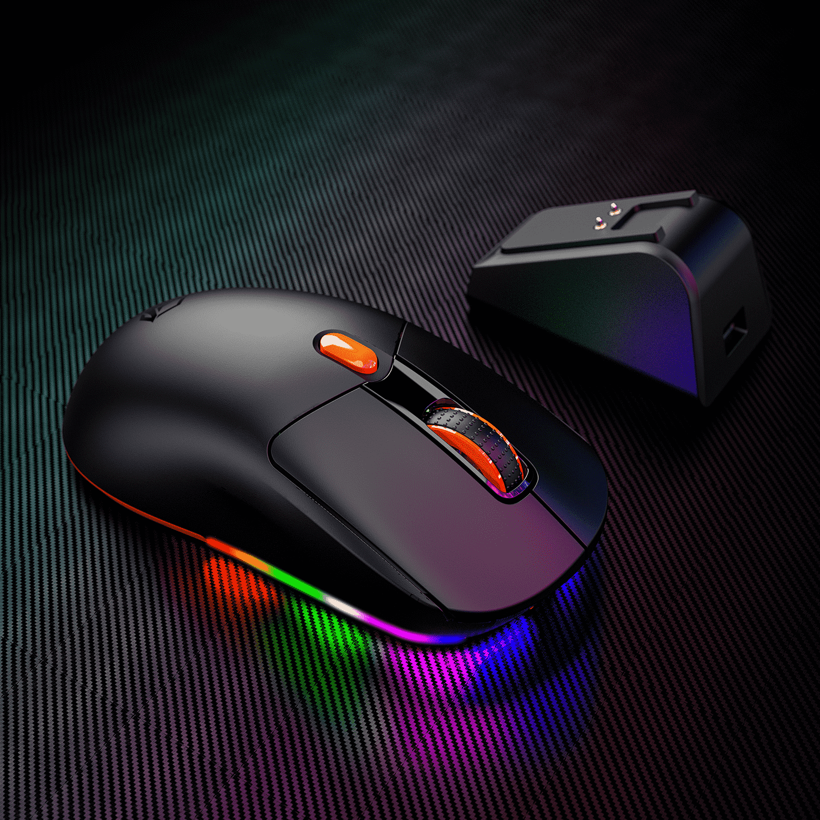 Featuring a full-color RGB backlighting system, the GW38 supports various lighting effects and color customization, allowing your mouse to shine with unique personality in any setting. Whether it's a vibrant gaming night or a sleek office desk, the RGB backlighting adds a visual delight to your setup.