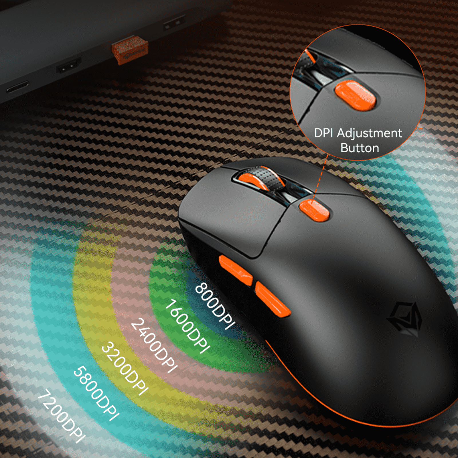 The GW38 mouse features multiple DPI settings, adjustable from 200 to 8000 DPI to cater to various usage needs. Whether you require ultra-fine cursor control for detailed design tasks or rapid response speeds for fast-paced gaming, the GW38 effortlessly adapts to your requirements. With an easy-access DPI switch button, users can quickly adjust the DPI based on the current scenario, ensuring every action is executed with pinpoint accuracy.