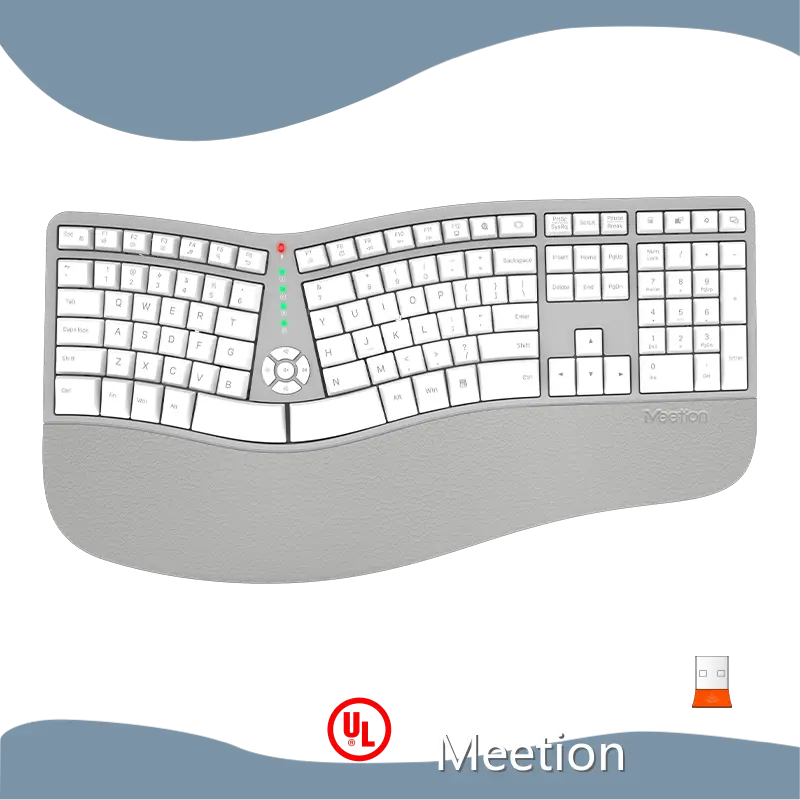 Aksesuar, bölünmüş klavye tasarımına ve tam boyutlu düzene sahip, 2023 Yeni Yükseltme MEETION Kablosuz Klavye Ergonomik'tir. Doğal yazma ve kas gerginliğinin azaltılması için yastıklı avuç içi dayanağı, ayarlanabilir eğimli ayaklar ve standart 3 bölgeli bölünmüş klavye gibi özellikler içerir. Ayrıca çeşitli işletim sistemleriyle de uyumludur.