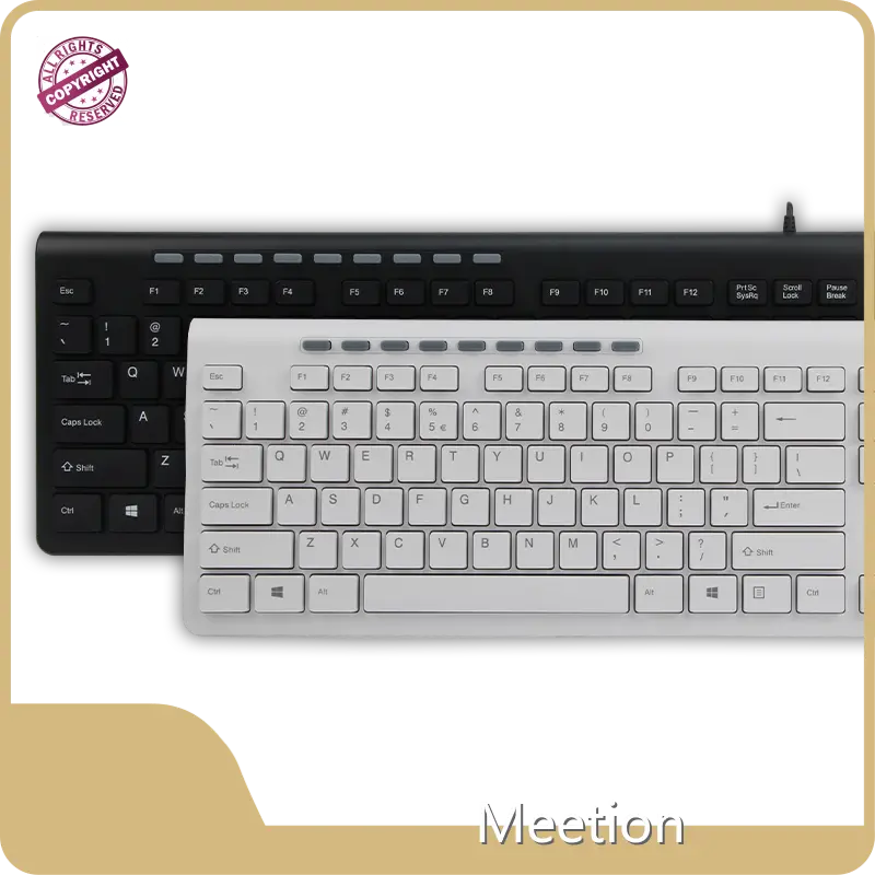 Meetion Kablolu Klavye, farklı pazar ihtiyaçlarını karşılamak için çeşitli stillerde sunulur ve endüstriyel kalite standartlarına uygundur. İnce ve ergonomik bir tasarıma, UV baskı işlemine, multimedya tuşlarına ve tak ve çalıştır USB arayüzüne sahiptir.