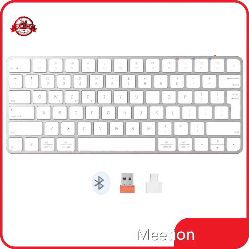 Kablosuz fare ve klavye MEETION, Mac ile mükemmel şekilde örtüşecek şekilde tasarlanmıştır ve uzun ömürlü pili ve multimedya işlev tuşları desteğiyle şık bir masaüstü arkadaşıdır.